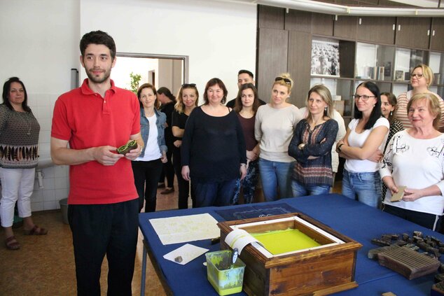 Workshop modrotlače začal stručnou prezentáciou etnologičky P. Rágulovej, ktorá objasnila históriu použitia modrotlače na Slovensku so zameraním na púchovskú dielňu rodiny Trnkovcov (pod vedením majstra Stanislava Trnku fungovala do konca 20. storočia). V 21. storočí opäť ožíva záujem o modrotlač v módnej etno-vlne. V roku 2016 bola zapísaná do národného Reprezentatívneho zoznamu nehmotného kultúrneho dedičstva. V roku 2017 bola nominovaná do svetového zoznamu UNESCO.